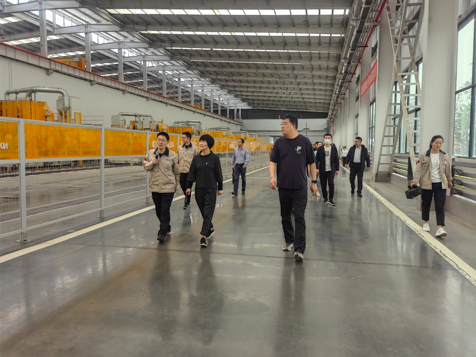 金年会公司党支部书记、副总经理黄玉钵带领魏红书记一行参观了机器人焊装生产线、箱体自动拼装工作站、总装配线、非公路宽体矿卡整车、室内外运动场等。魏红书记对金年会的智能制造表示赞赏,鼓励金年会不断进行科技创新,增强企业发展内驱力。为进一步加强党性教育,坚定理想信念,筑牢忠诚根基,